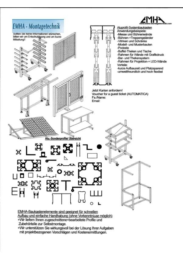 EMHA-Montagetechnik projektiert, fertigt und montiert kundenspezifische Individualsysteme aus Aluminium-Konstruktionsprofilen.